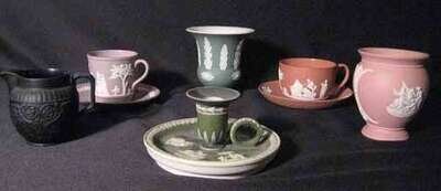 Six piece group of assorted colored Wedgwood jasperware
