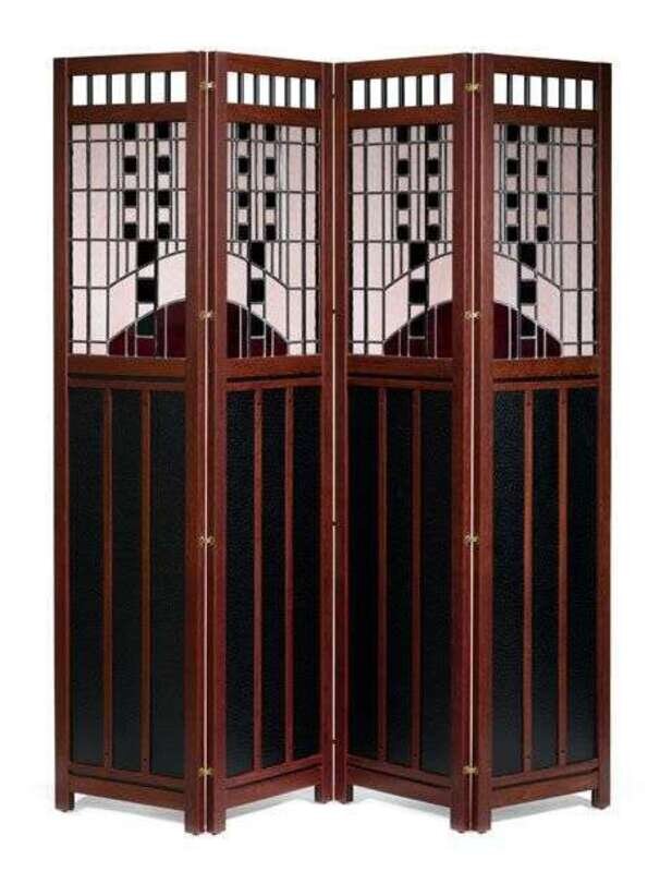 Art Deco Revival four panel leaded glass and heart wood folding screen anthony d. beverly, 20th century