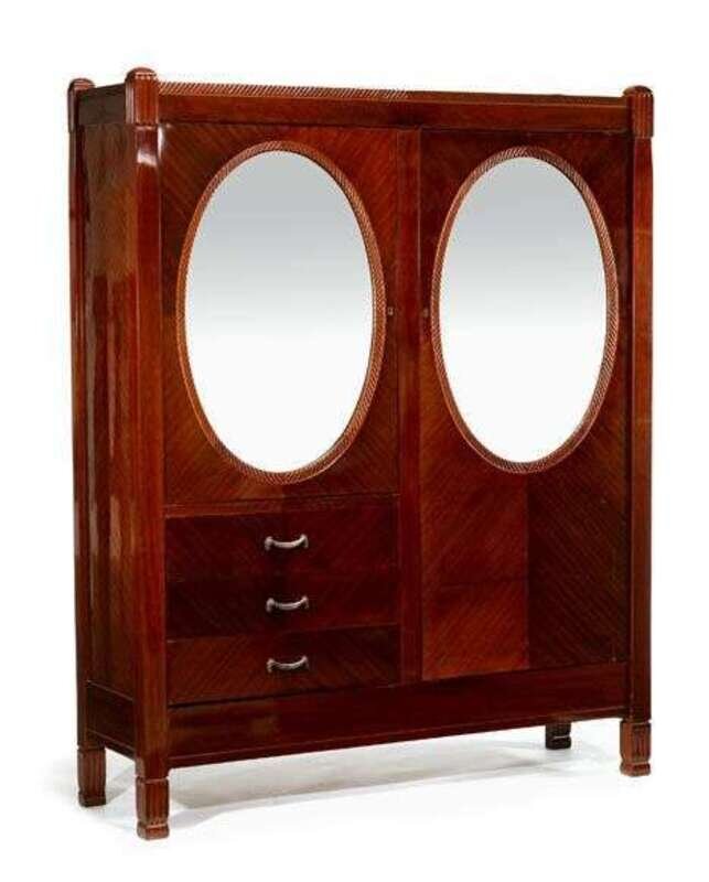 French Art Deco mahogany armoire louis sue & andre mare (french 1875-1968, 1885-1932), ca. 1918-1920