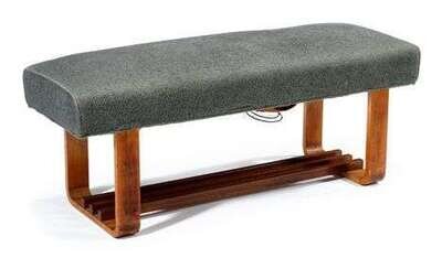 Moderne upholstered walnut and maple bench joseph aronson (1900-1976), new york, circa 1943