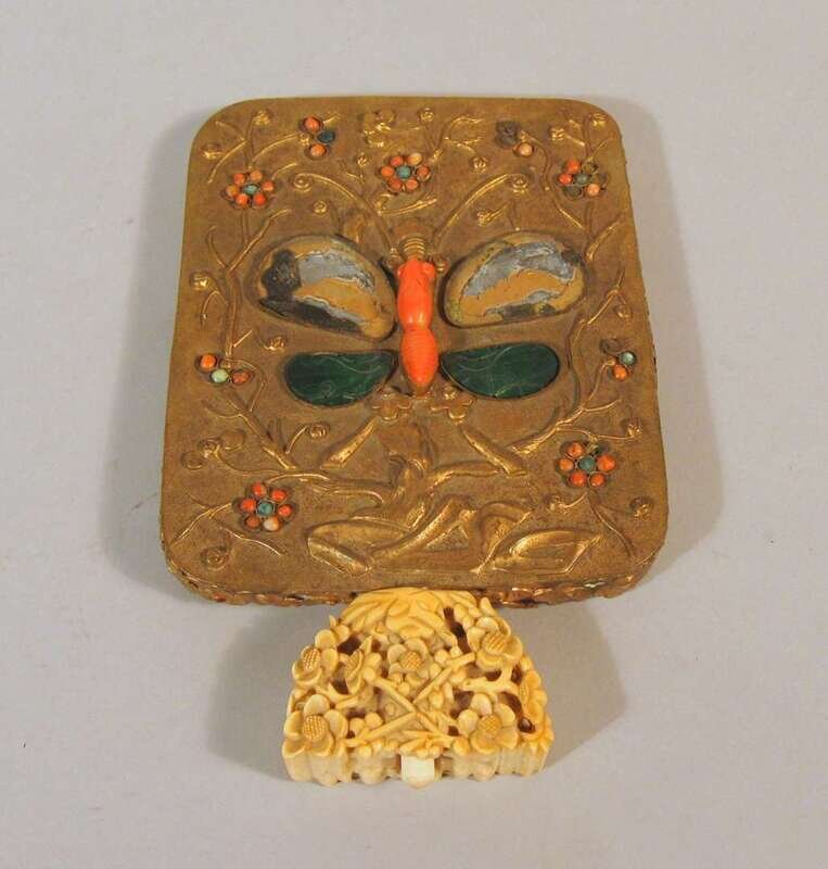 Chinese elephant ivory and gilt metal mirror head 19th century