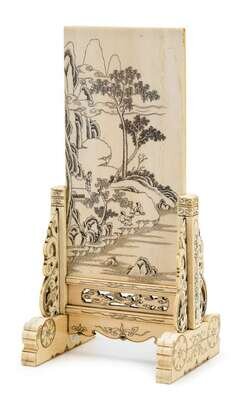 Chinese elephant ivory and inkwork table screen qing dynasty