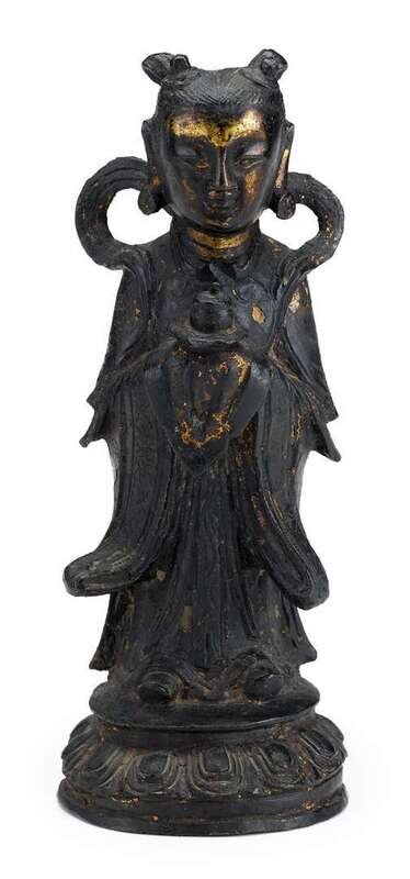 Large Chinese Ming partially gilt bronze attendant figure ming dynasty