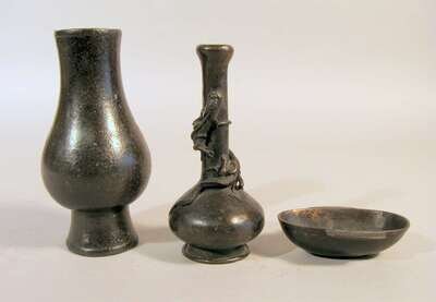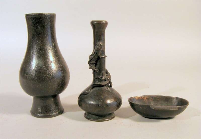 Two Chinese bronze vases and bronze 'ear cup' bowl late ming and qing dyansty