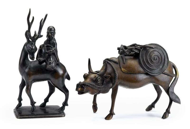 Comprised of an immortal surmounting a deer, together with a twin-horned buffalo.