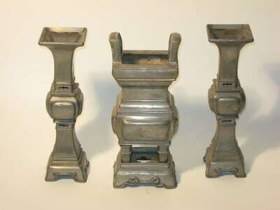 Comprised of a pair of Gu form vases, together with a tall arched handle censer.