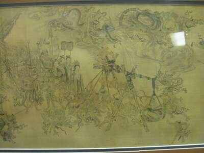 Hand scroll fragment, wash and ink on paper, L: 45 in. Framed and glazed