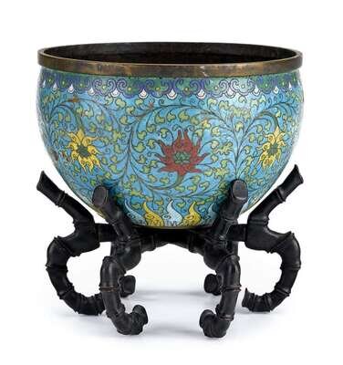Large Chinese gilt metal and cloisonne' basin 17th century