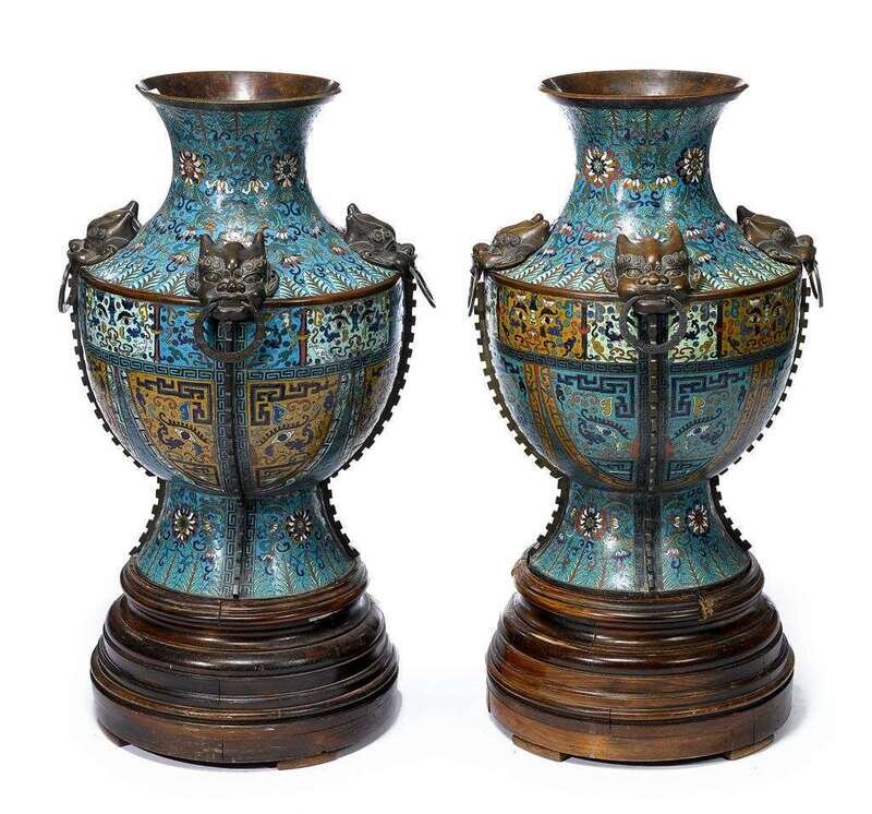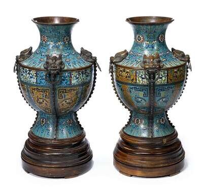 Pair of Impressive Chinese cloisonne enamel and bronze mounted vases qing dynasty
