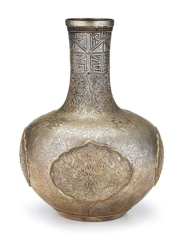 Large and Impressive Sino-Tibetan silver vase 19th century