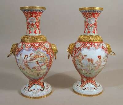 Pair of Chinese gilt-metal and enamel vases Qing dynasty
