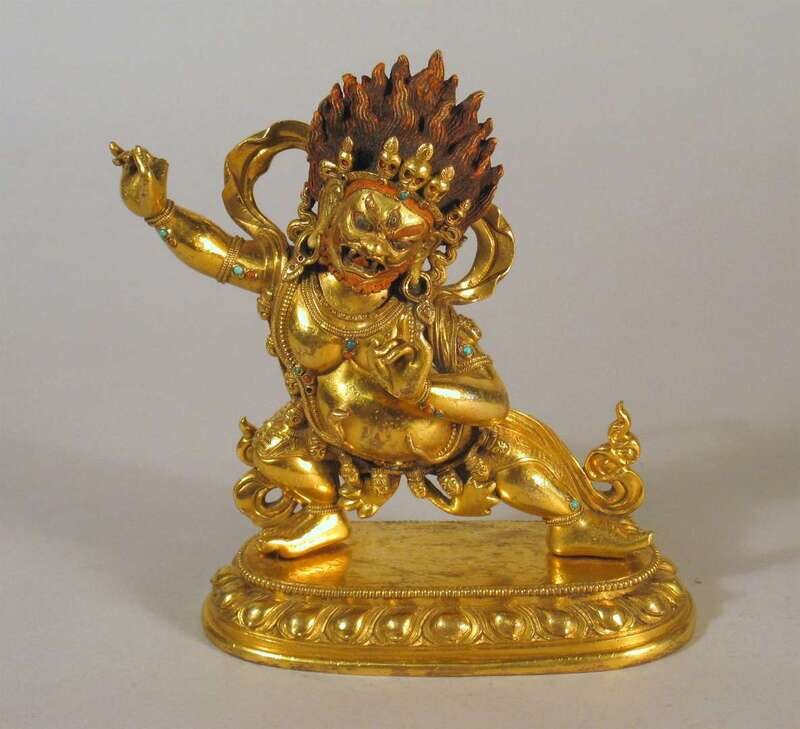Good Sino Tibetan gilt bronze and 'jeweled' Yama figure 19th century