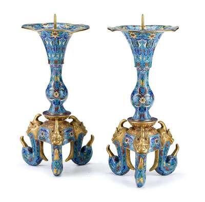 Pair of Chinese gilt metal and cloisonne enamel prickets