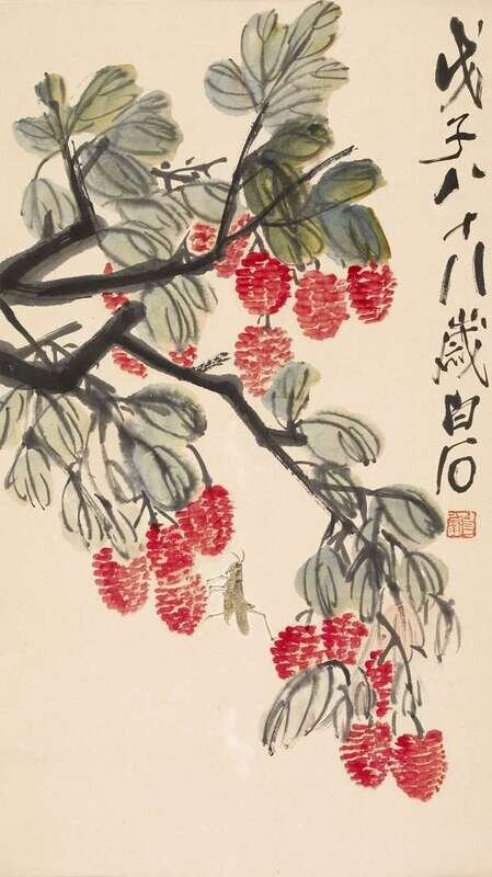 AFTER QI BAISHI CHINESE, 20TH CENTURY LYCHEE AND GRASSHOPPER
