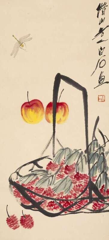 AFTER QI BAISHI CHINESE, 20TH CENTURY BASKET WITH DRAGONFLY