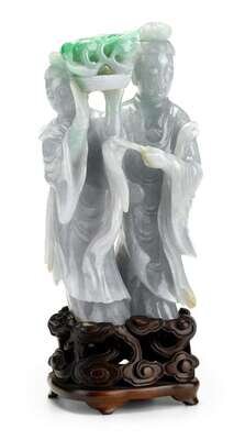 Good Chinese green jadeite grouping 19th century