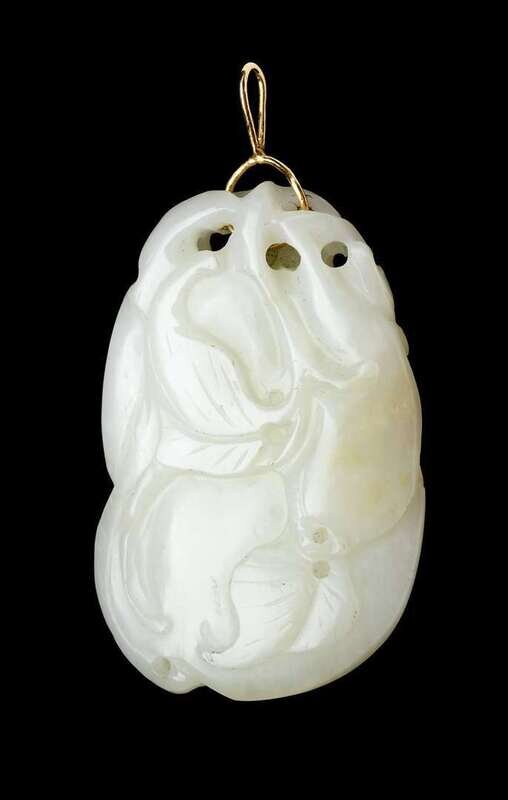 Good Chinese white jade 'bat and gourd' pendant 19th century