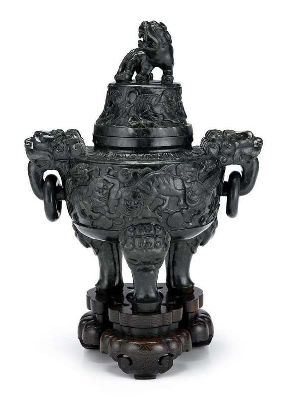 Large and impressive Chinese spinach jade covered censer late 19th century
