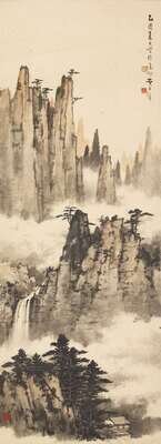 Hanging scroll, wash and ink on paper, H: 36 in.