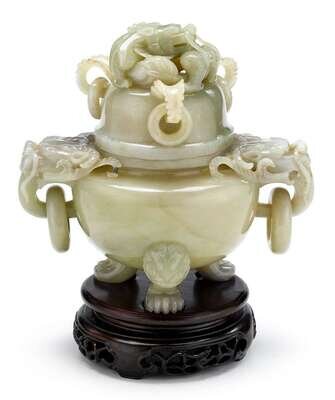 Large and impressive Chinese jade censer on stand 19/20th century