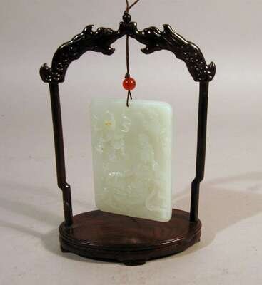 Chinese light celadon jade plaque 20th century