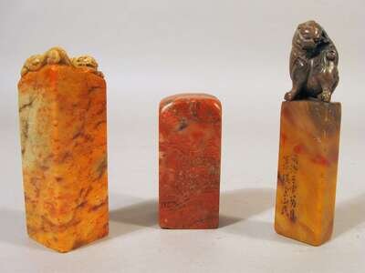 Three Chinese soapstone seals qing dynasty and later