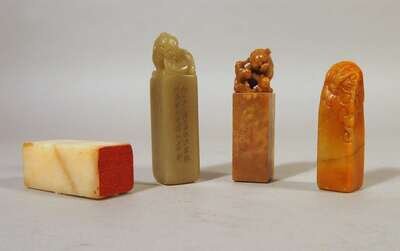 Four Chinese soapstone seals qing dynasty and later