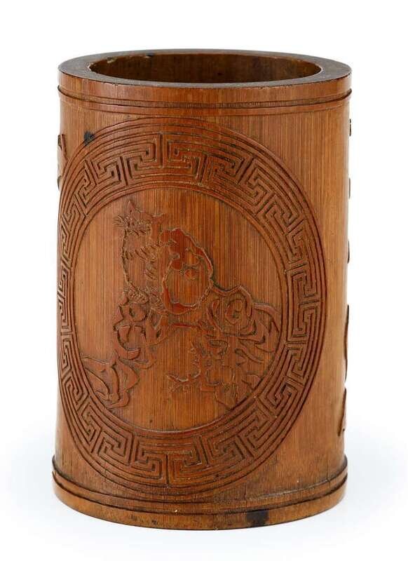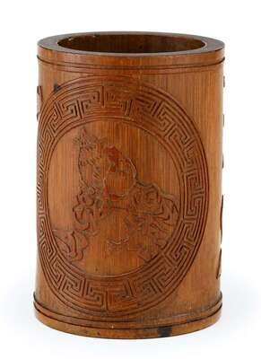 Good Chinese bamboo brush pot, and applied covered box early 20th century and later