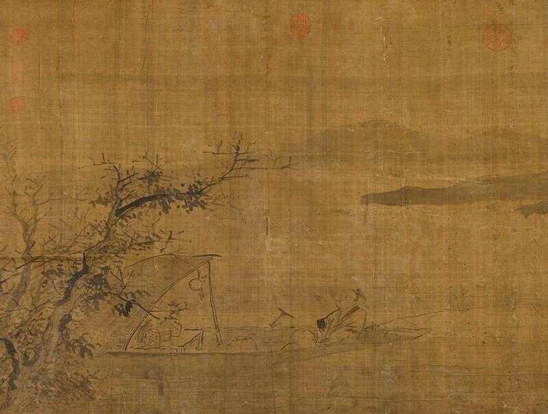 Hanging scroll, wash and ink on silk, spurious Qianlong seal H: 27 in.