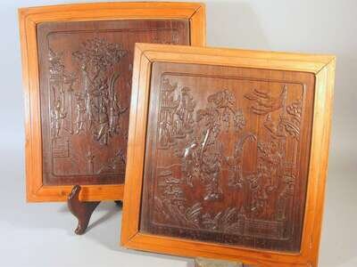Pair of Chinese carved zitan panels 19th century