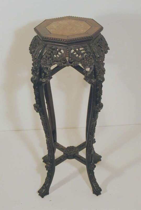 With decorative openwork carving and octagonal marble insert to top.