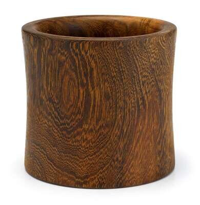 Of large, heavy proportions and cylindrical, concave form; vivid and dense grain.