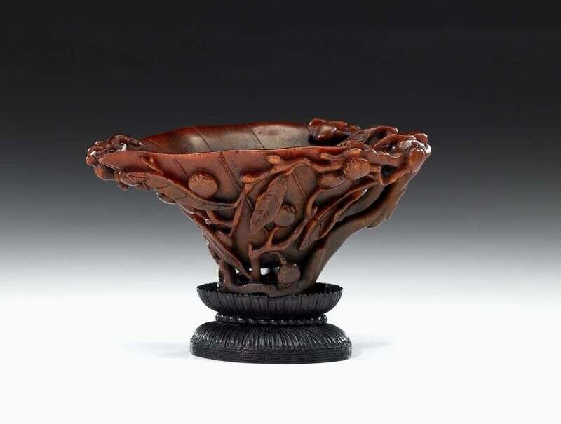 Fine Chinese rhinoceros horn libation cup 17/18th century