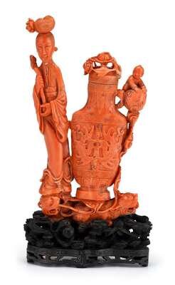 Chinese carved coral grouping Qing dynasty