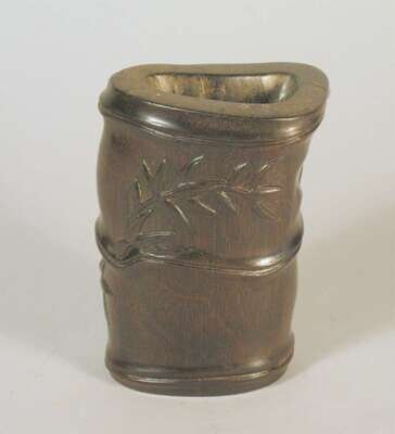 Of narrow cylindrical form, carved to show bamboo sprig.