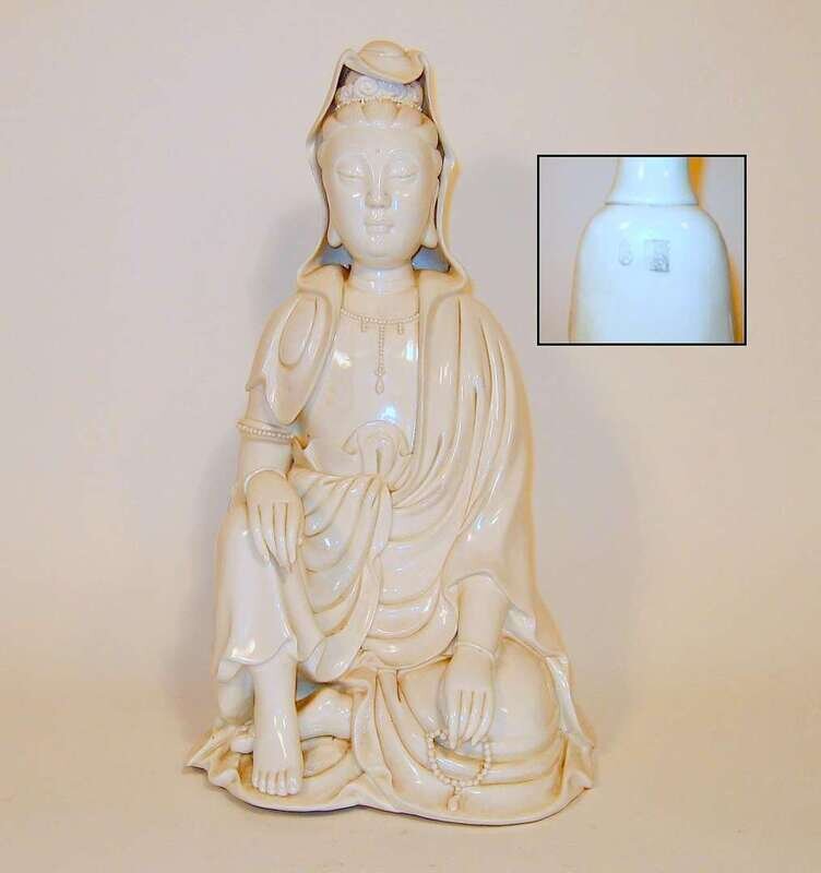 Large Chinese blanc-de-chine Quanyin gourd seal verso, late qing dynasty