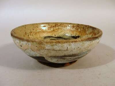 Of wide U-shape, thick multicolor glaze, unglazed foot rim.