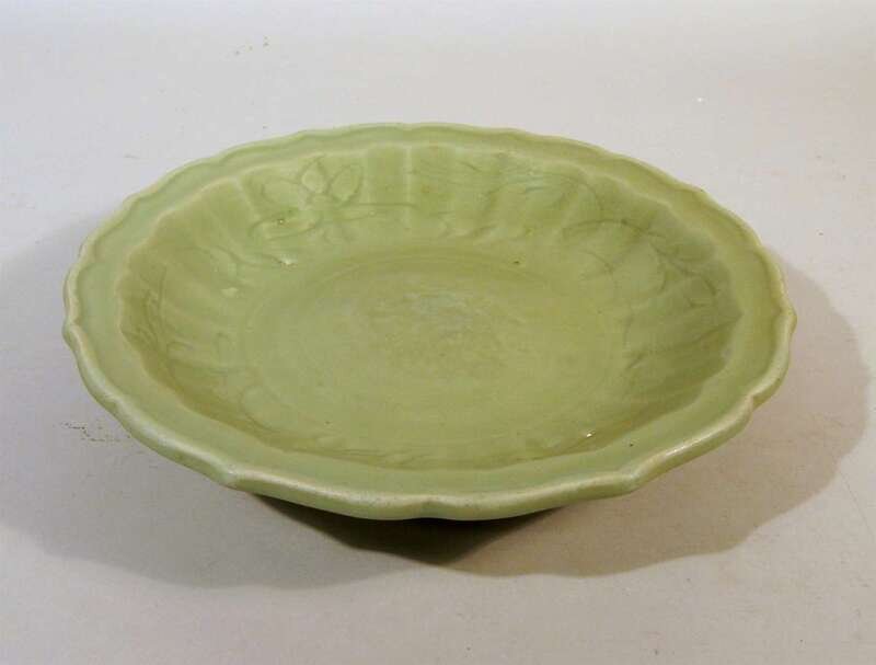 Chinese Ming carved celadon glazed porcelain charger ming dyansty