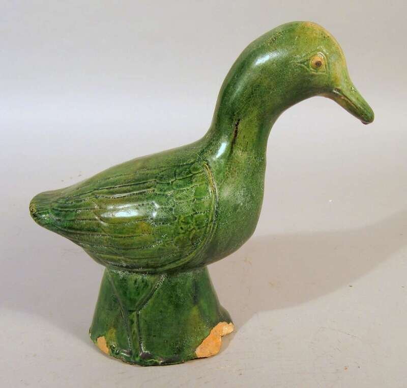 Large Chinese green glazed pottery mandarin duck model tang dynasty