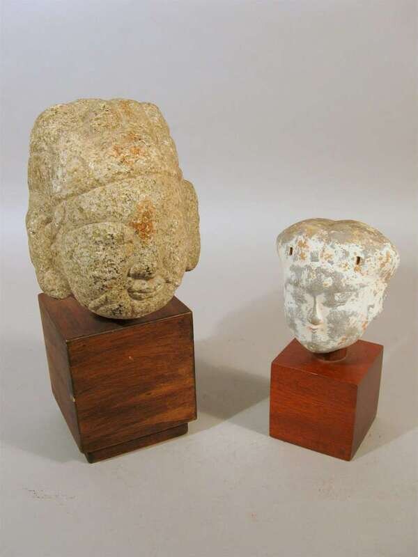 Comprised of a Han style pottery head, together with stone head of an attendant.