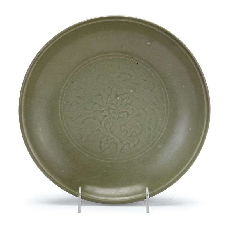 Chinese Ming carved celadon glazed porcelain dish ming dynasty