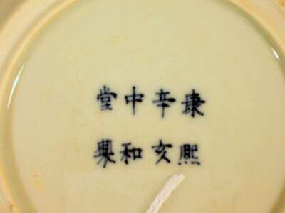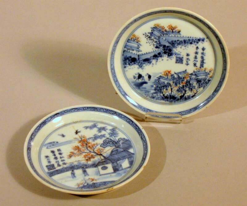 Pair of Chinese blue, copper red and white porcelain dishes kangxi period