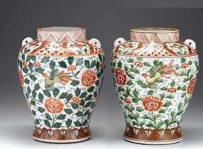 Pair of South Chinese wucai jars early qing dynasty