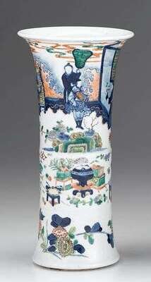 Chinese famille rose and blue glazed porcelain beaker vase kangxi mark, 19th century