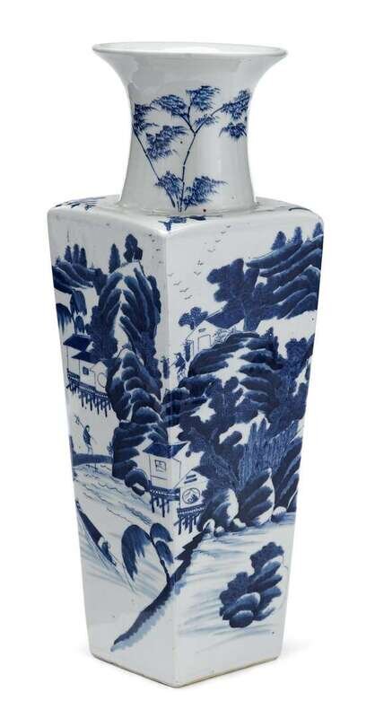 Large Chinese square blue and white porcelain vase late qing dynasty