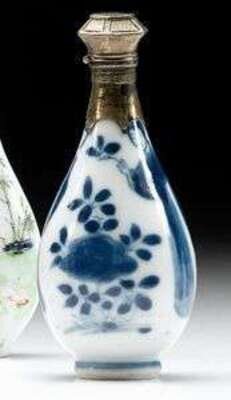 Unusual kangxi blue and white bottle kangxi leaf mark and of the period
