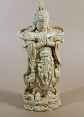Chinese blanc de chine guardian figure impressed gourd and seal mark