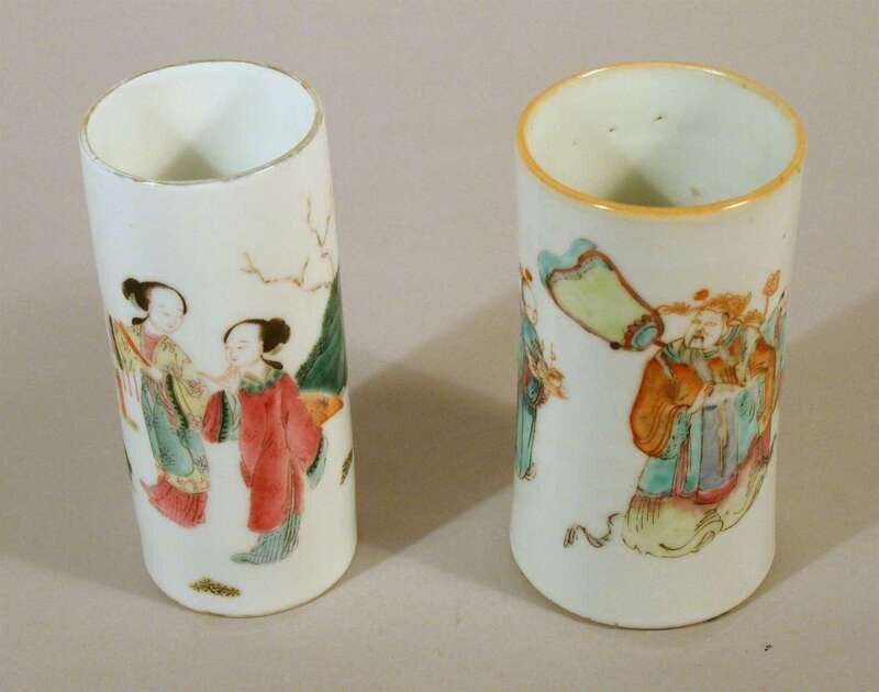 Two Chinese famille rose porcelain brush pots rubbed marks, 19/20th century