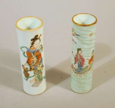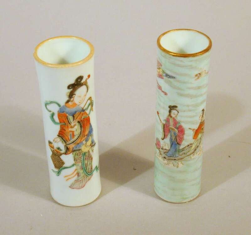 Both of tall cylindrical form, well enameled to show female attendant.