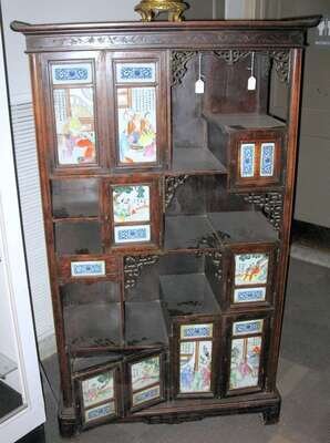Chinese softwood porcelain insert display cabinet